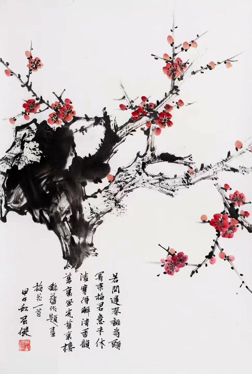 屈健教授中国画作品-《冻蕊香凝色艳新》